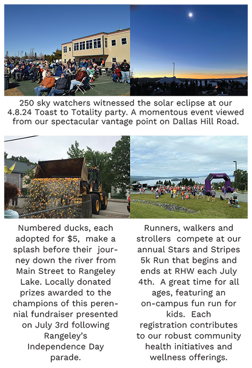 RHW is a non profit 501(c)3 whose mission is to facilitate and promote health and wellness in the Rangeley Lakes region. We are generously supported by individual donors, private foundations, grants, municipal funds, special events and a host of dedicated volunteers. We are here for your well-being!